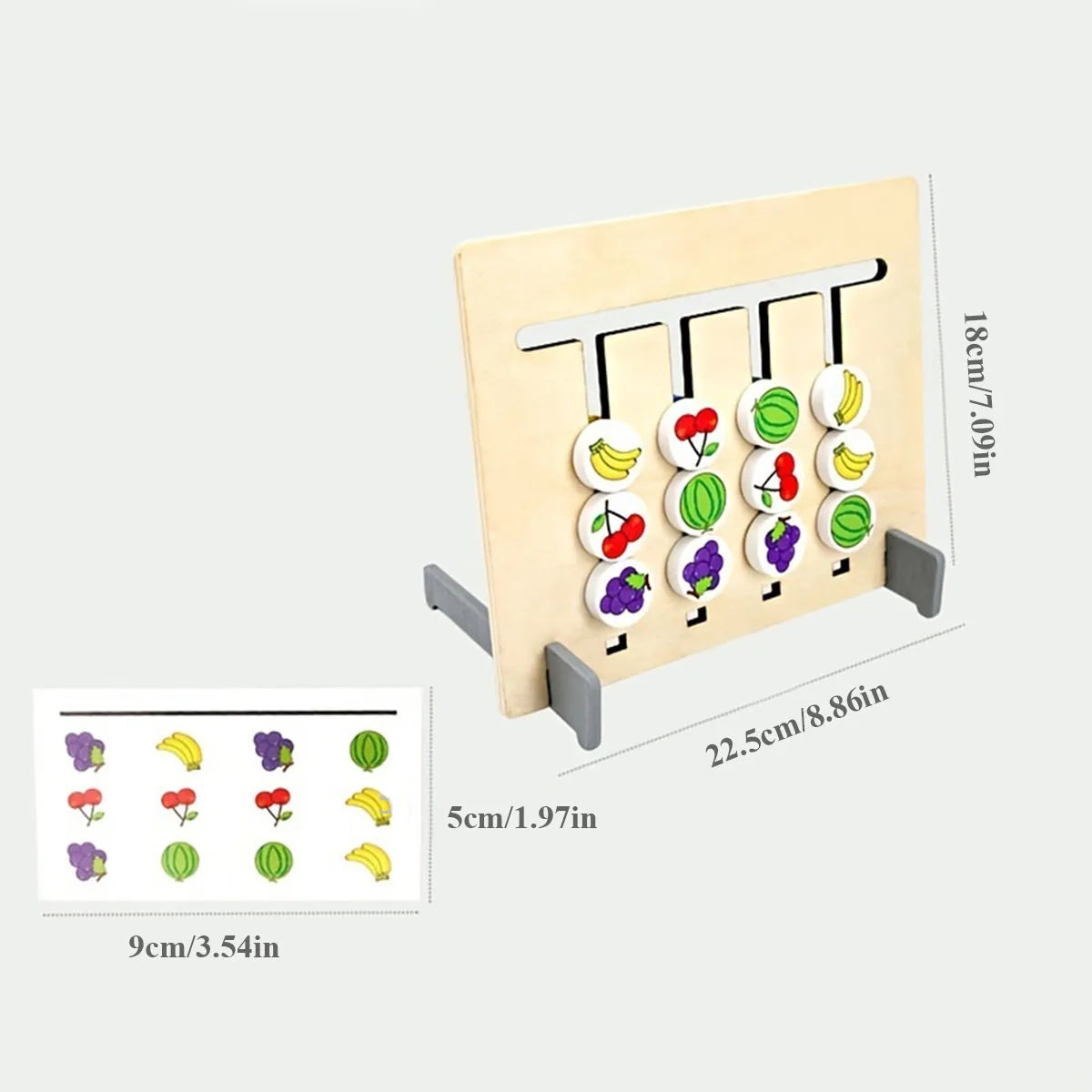 De verschillende kleuren en fruitsoorten zorgen ervoor dat je ook kleuren en vormen leert herkennen en kunt matchen.